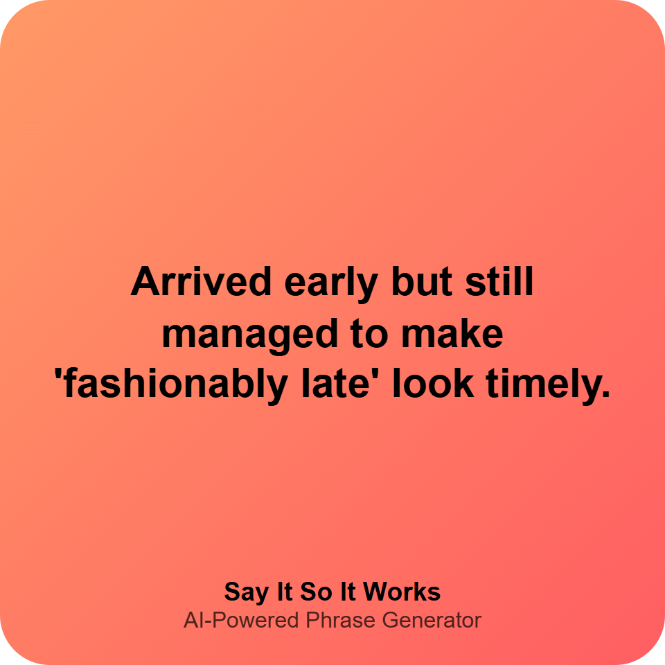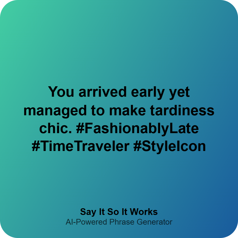 You arrived early yet managed to make tardiness chic. #FashionablyLate #TimeTraveler #StyleIcon