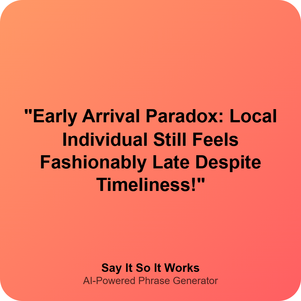 "Early Arrival Paradox: Local Individual Still Feels Fashionably Late Despite Timeliness!"