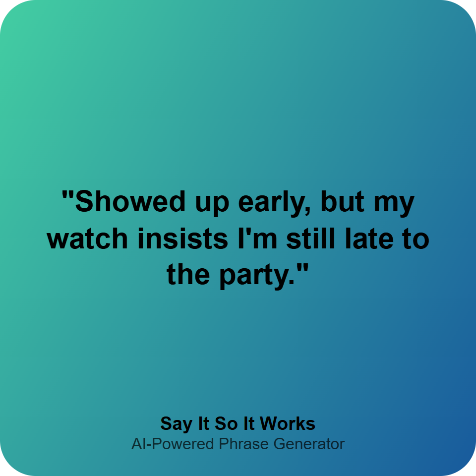 "Showed up early, but my watch insists I'm still late to the party."
