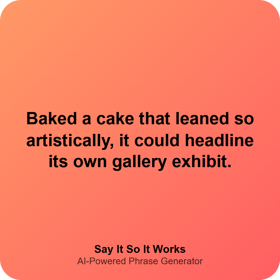 Baked a cake that leaned so artistically, it could headline its own gallery exhibit.