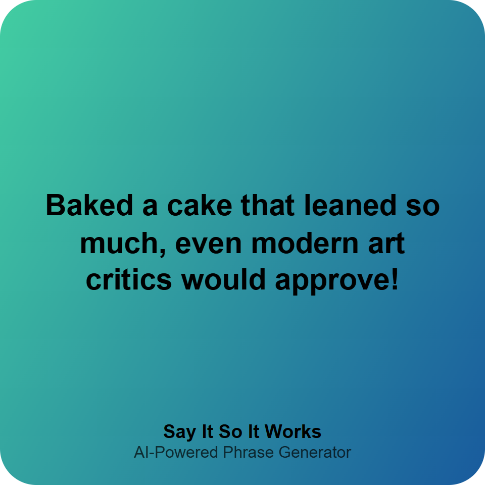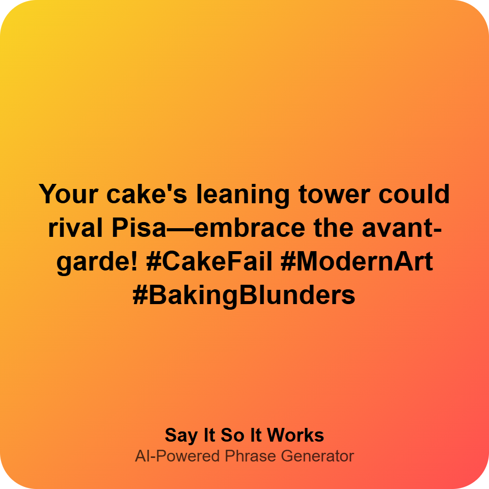 Your cake's leaning tower could rival Pisa—embrace the avant-garde! #CakeFail #ModernArt #BakingBlunders