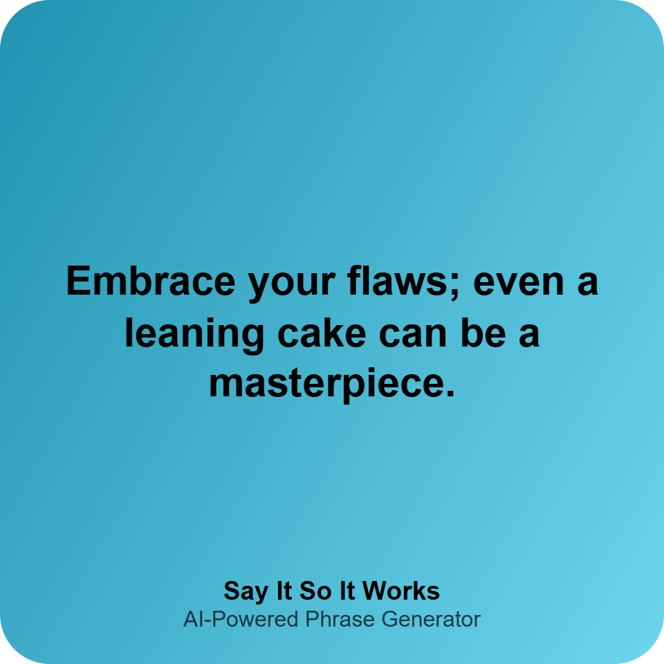 Embrace your flaws; even a leaning cake can be a masterpiece.