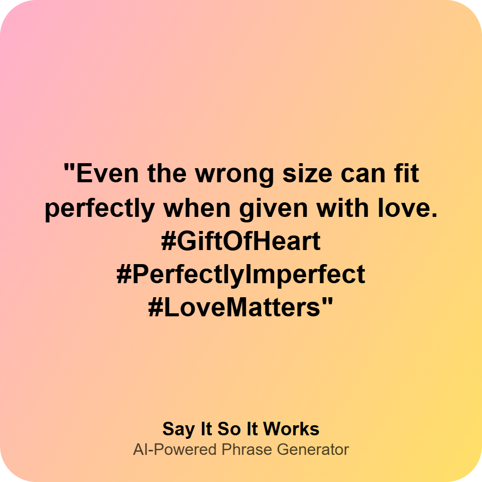 "Even the wrong size can fit perfectly when given with love. #GiftOfHeart #PerfectlyImperfect #LoveMatters"