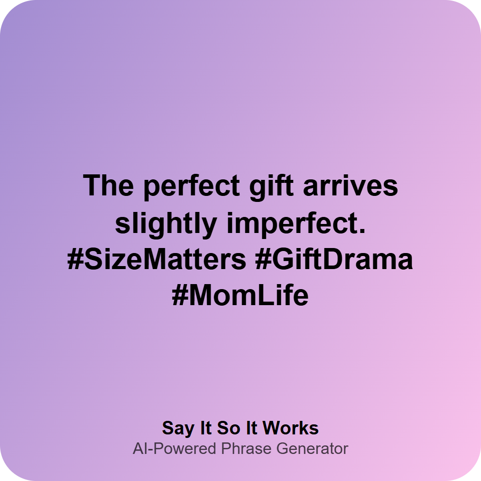 The perfect gift arrives slightly imperfect. #SizeMatters #GiftDrama #MomLife