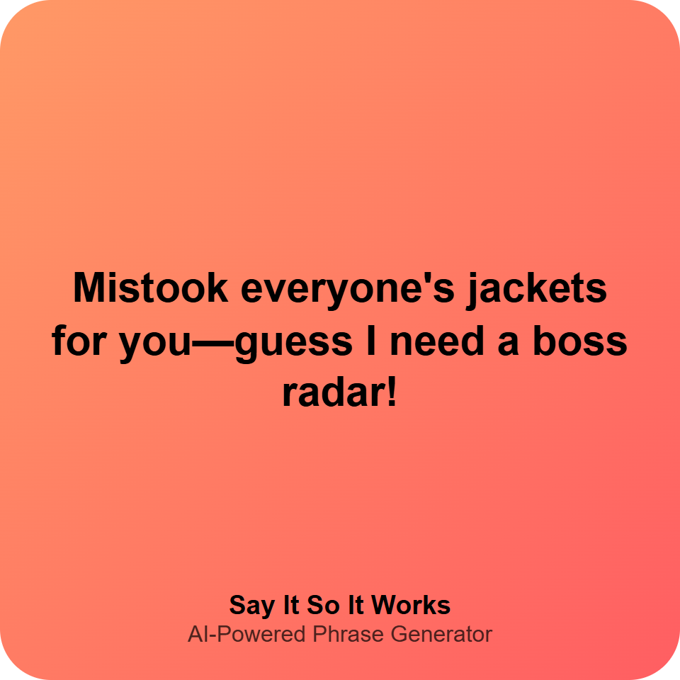 Mistook everyone's jackets for you—guess I need a boss radar!