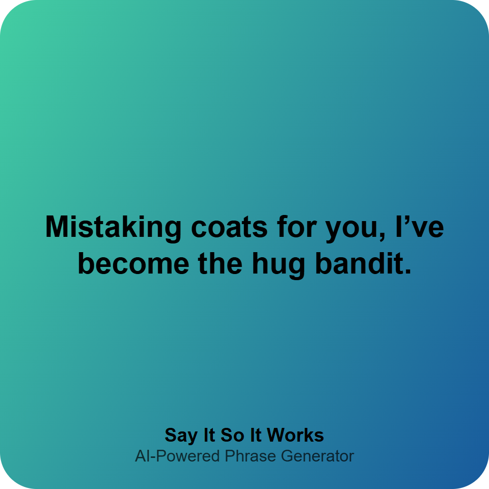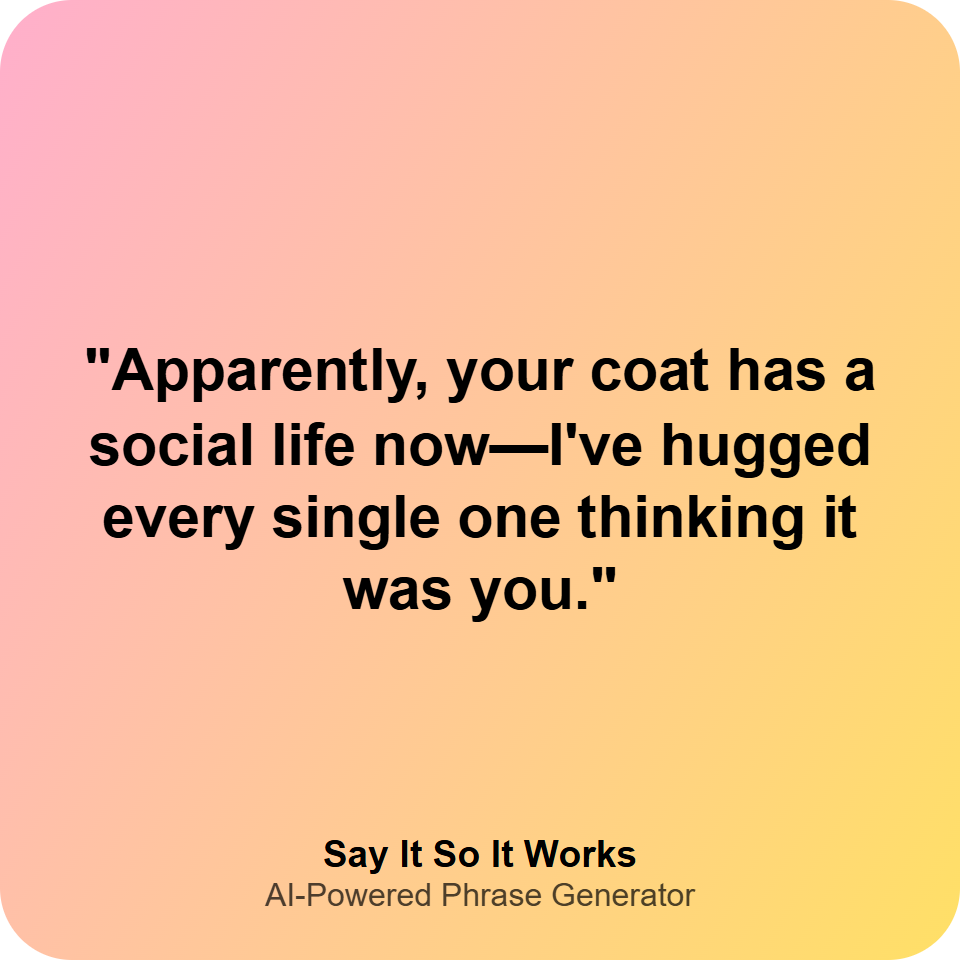 "Apparently, your coat has a social life now—I've hugged every single one thinking it was you."