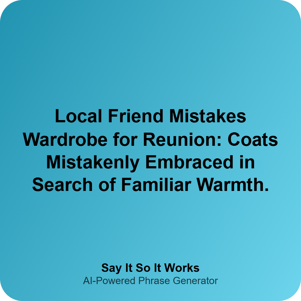 Local Friend Mistakes Wardrobe for Reunion: Coats Mistakenly Embraced in Search of Familiar Warmth.