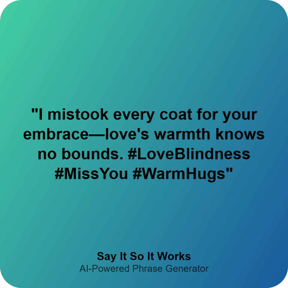 "I mistook every coat for your embrace—love's warmth knows no bounds. #LoveBlindness #MissYou #WarmHugs"