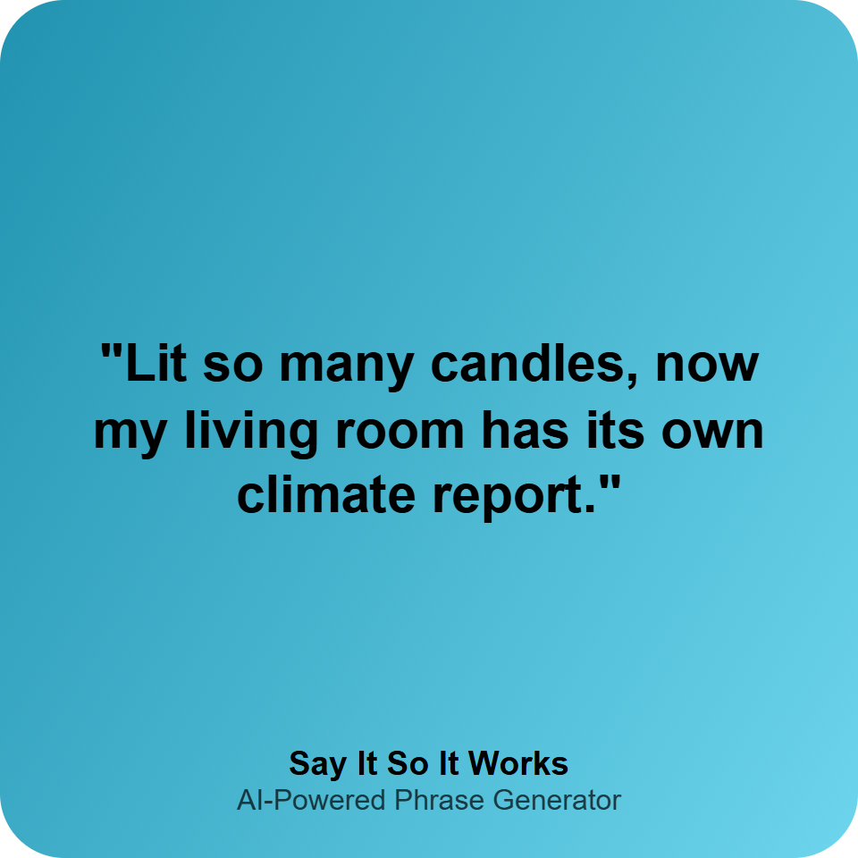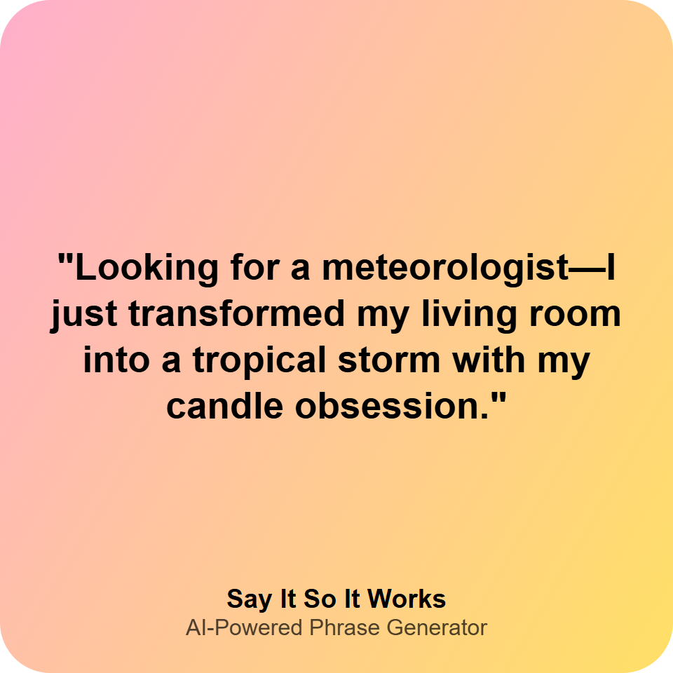 "Looking for a meteorologist—I just transformed my living room into a tropical storm with my candle obsession."