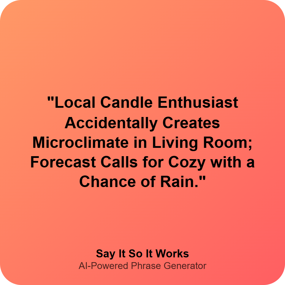 "Local Candle Enthusiast Accidentally Creates Microclimate in Living Room; Forecast Calls for Cozy with a Chance of Rain."