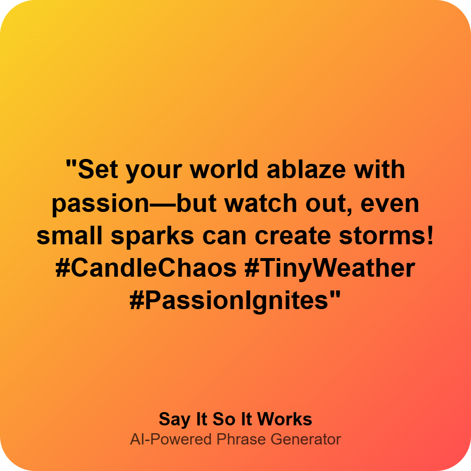 "Set your world ablaze with passion—but watch out, even small sparks can create storms! #CandleChaos #TinyWeather #PassionIgnites"