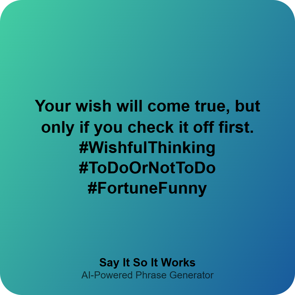 Your wish will come true, but only if you check it off first. #WishfulThinking #ToDoOrNotToDo #FortuneFunny