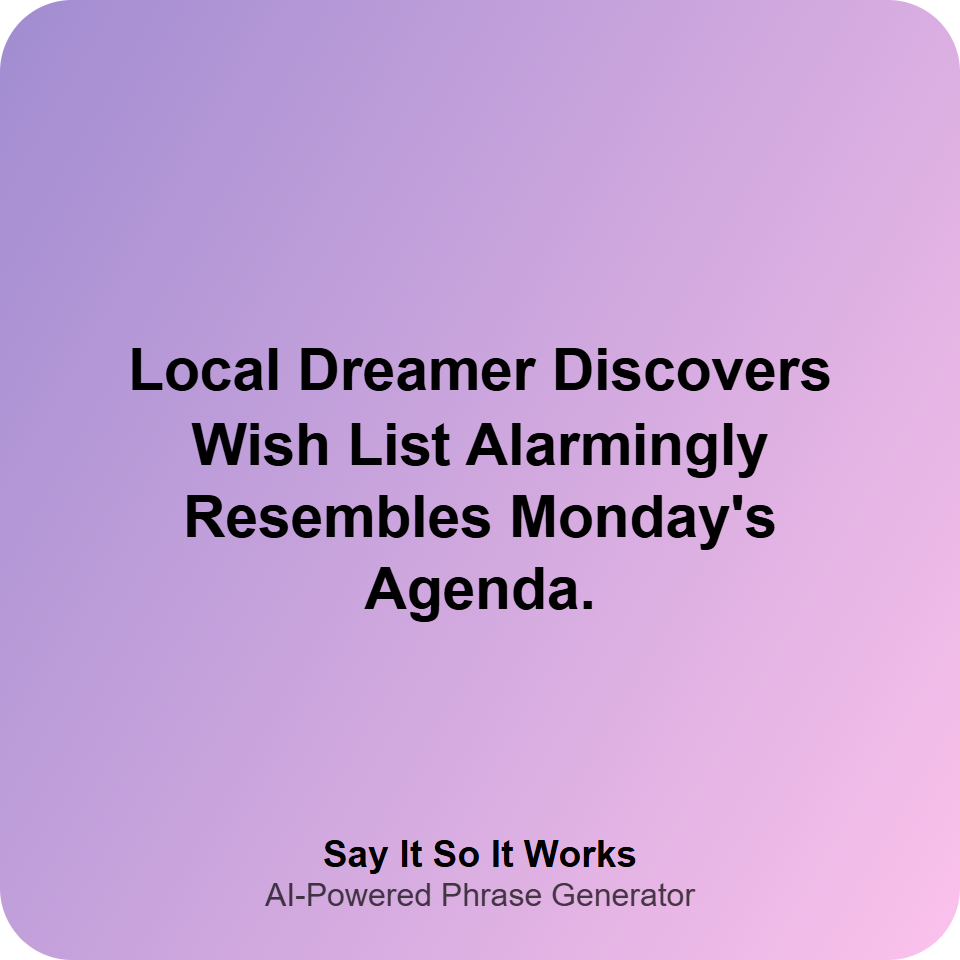 Local Dreamer Discovers Wish List Alarmingly Resembles Monday's Agenda.