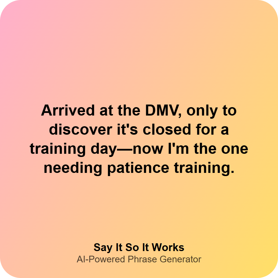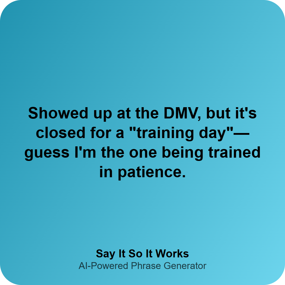 Showed up at the DMV, but it's closed for a "training day"—guess I'm the one being trained in patience.