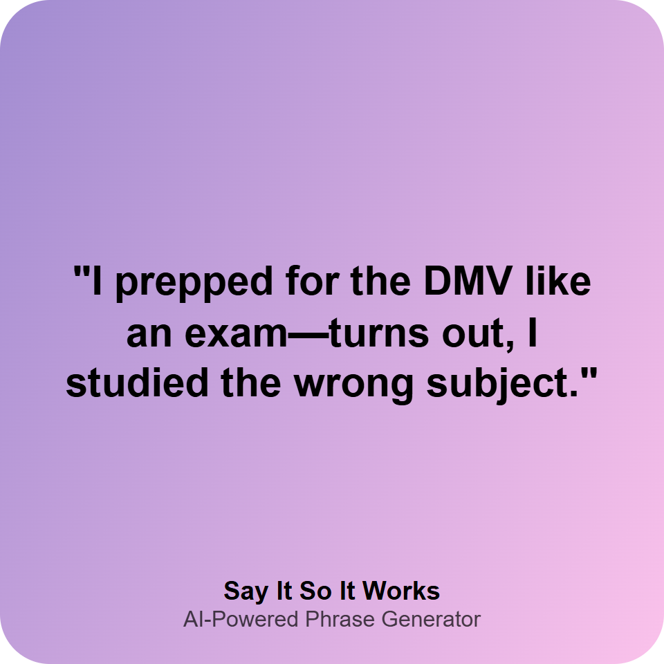 "I prepped for the DMV like an exam—turns out, I studied the wrong subject."