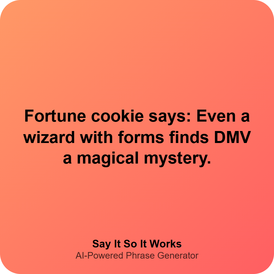 Fortune cookie says: Even a wizard with forms finds DMV a magical mystery.