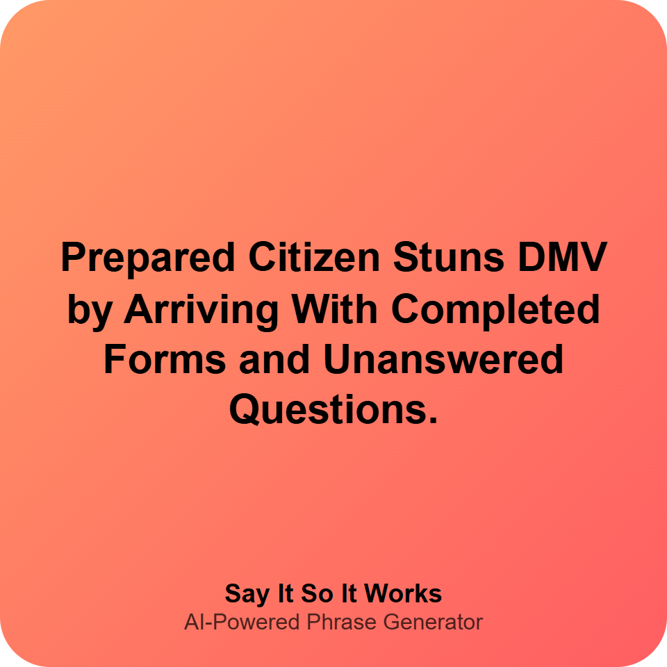 Prepared Citizen Stuns DMV by Arriving With Completed Forms and Unanswered Questions.