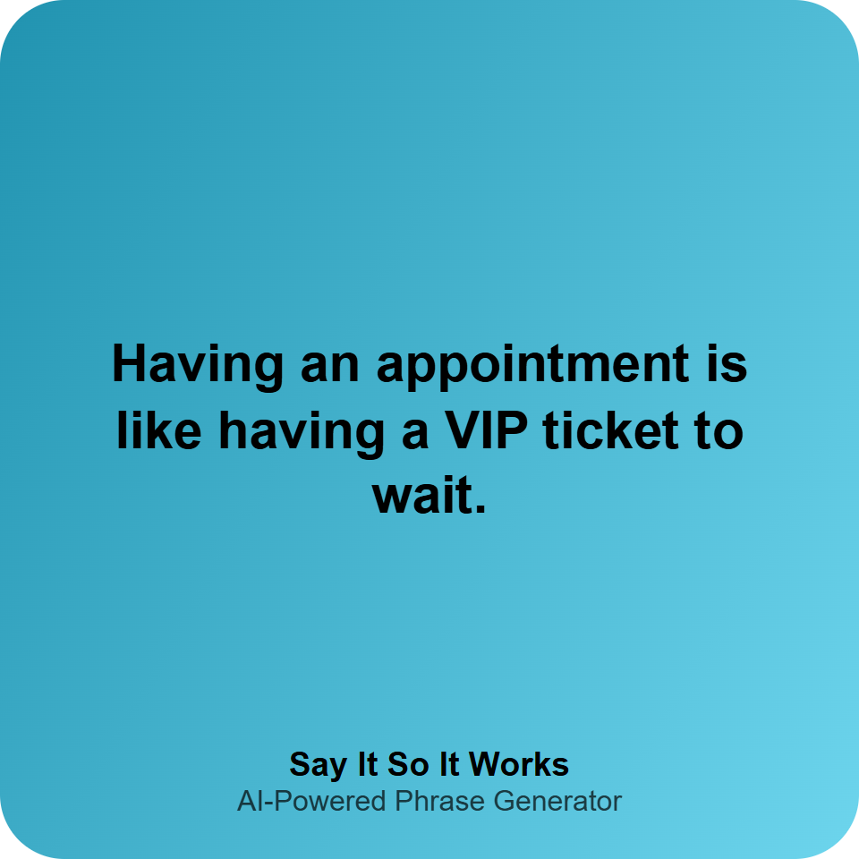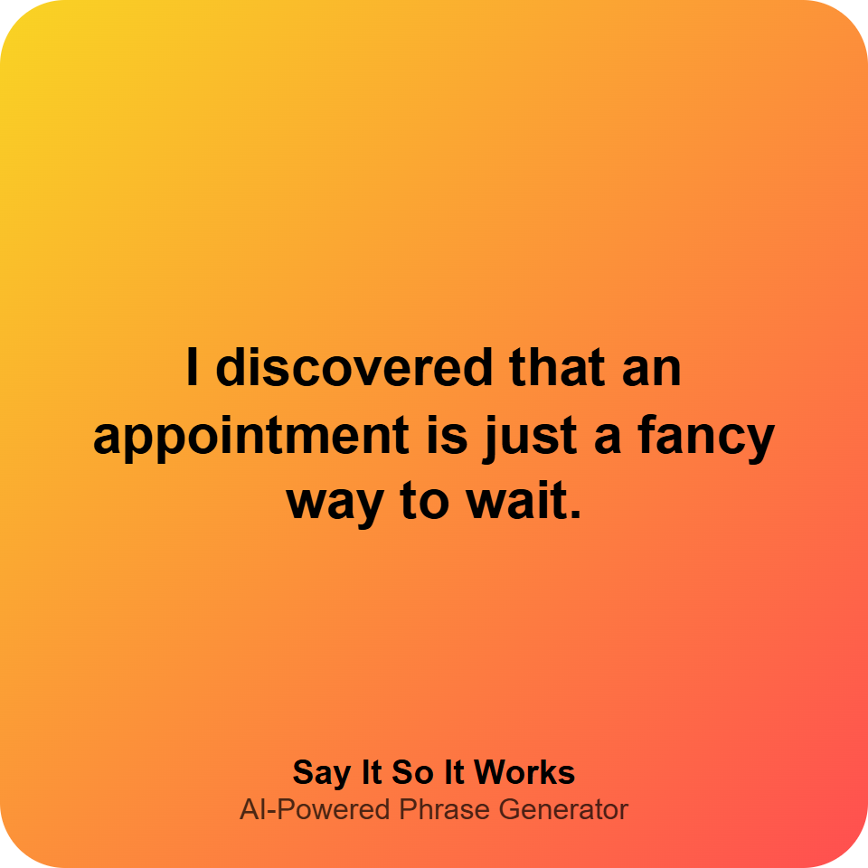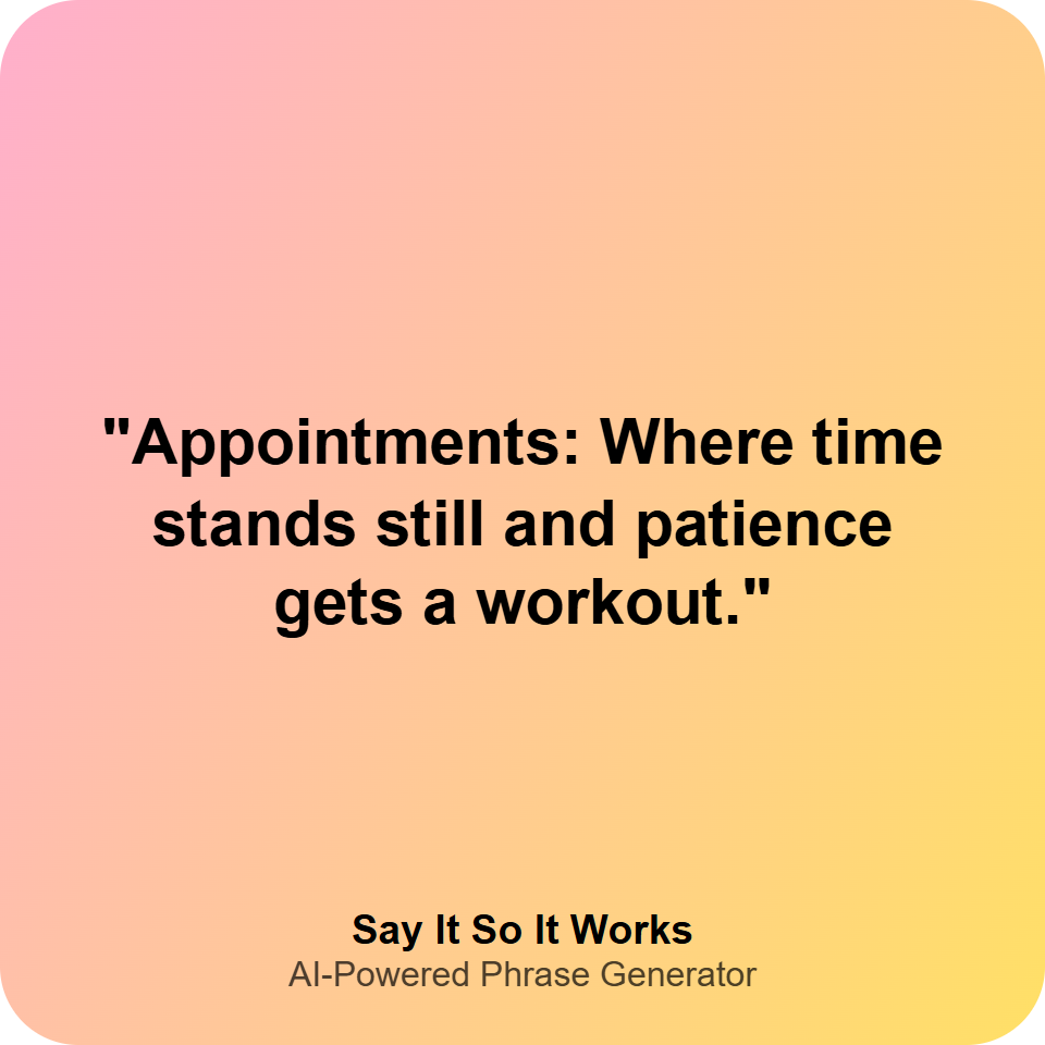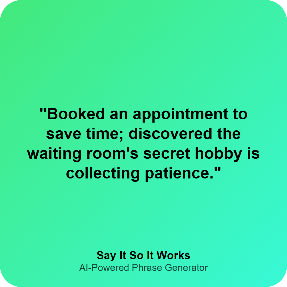 "Booked an appointment to save time; discovered the waiting room's secret hobby is collecting patience."