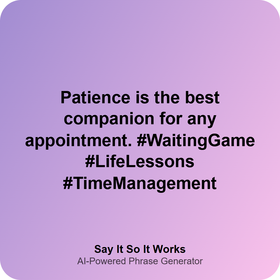 Patience is the best companion for any appointment. #WaitingGame #LifeLessons #TimeManagement