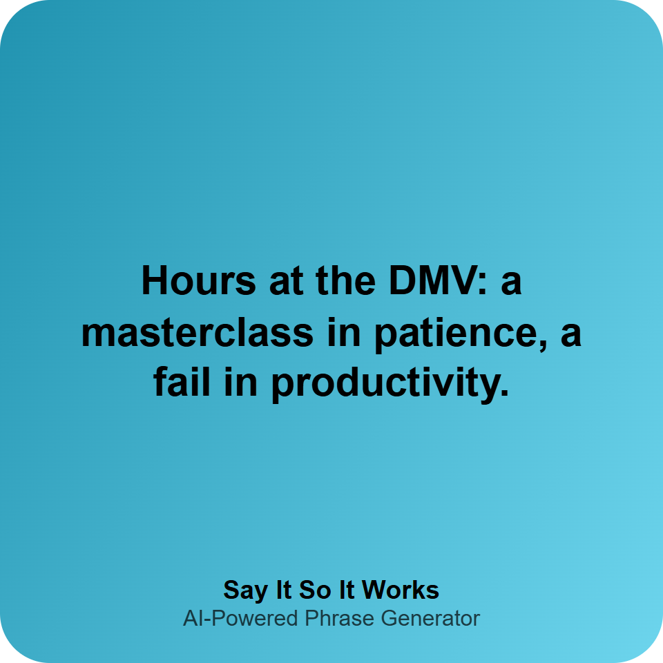 Hours at the DMV: a masterclass in patience, a fail in productivity.
