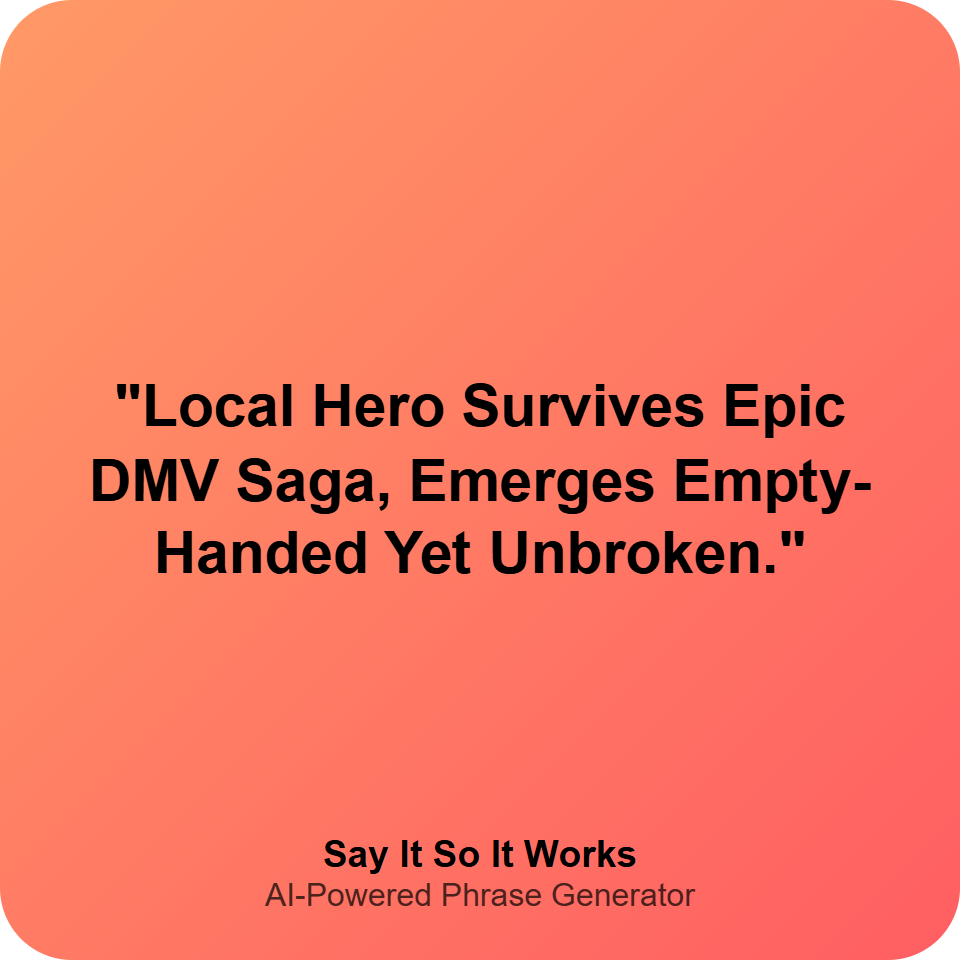 "Local Hero Survives Epic DMV Saga, Emerges Empty-Handed Yet Unbroken."