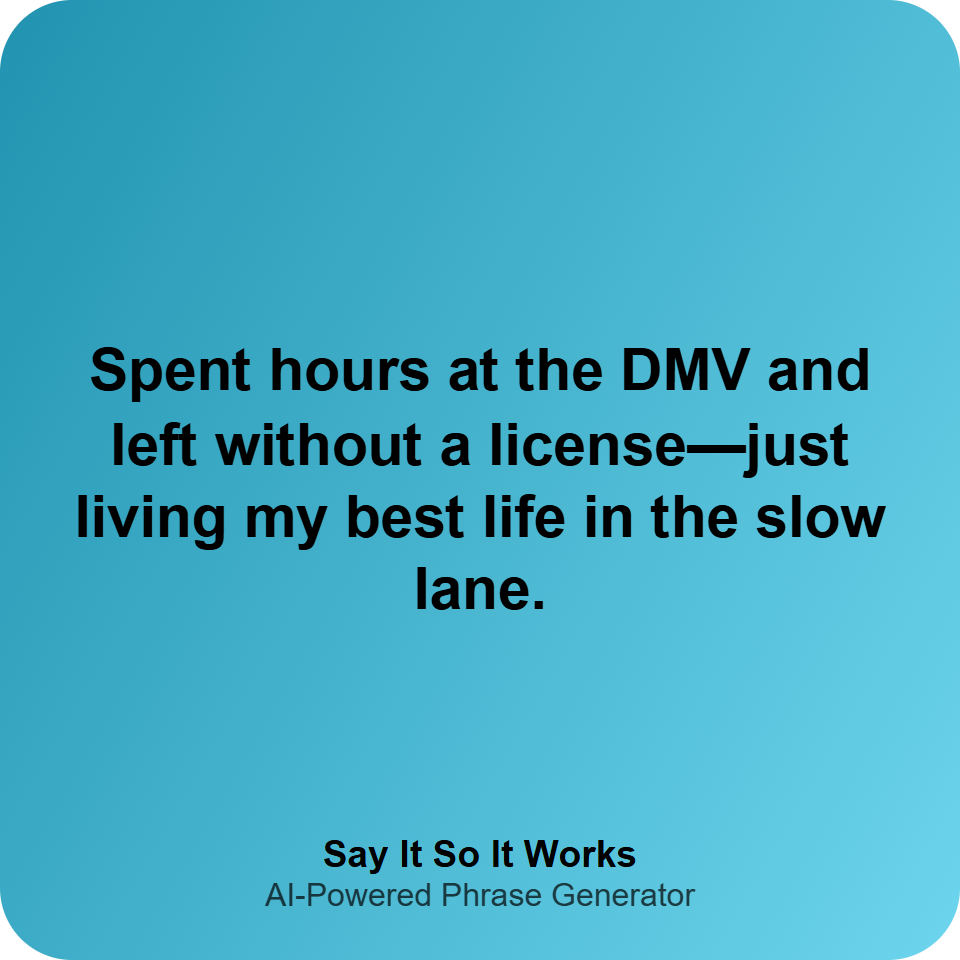Spent hours at the DMV and left without a license—just living my best life in the slow lane.