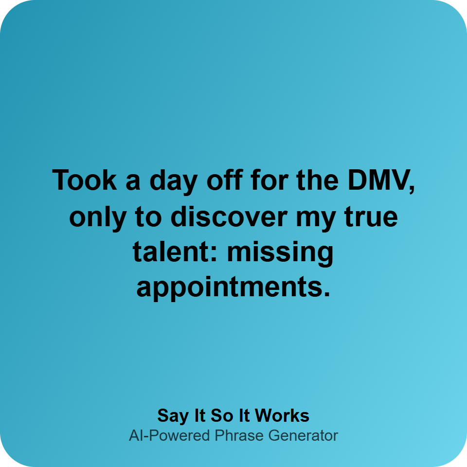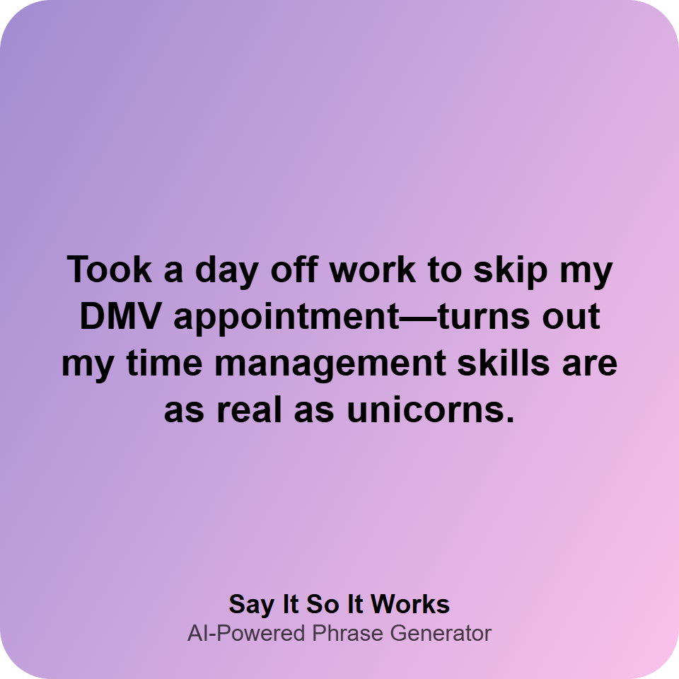 Took a day off work to skip my DMV appointment—turns out my time management skills are as real as unicorns.