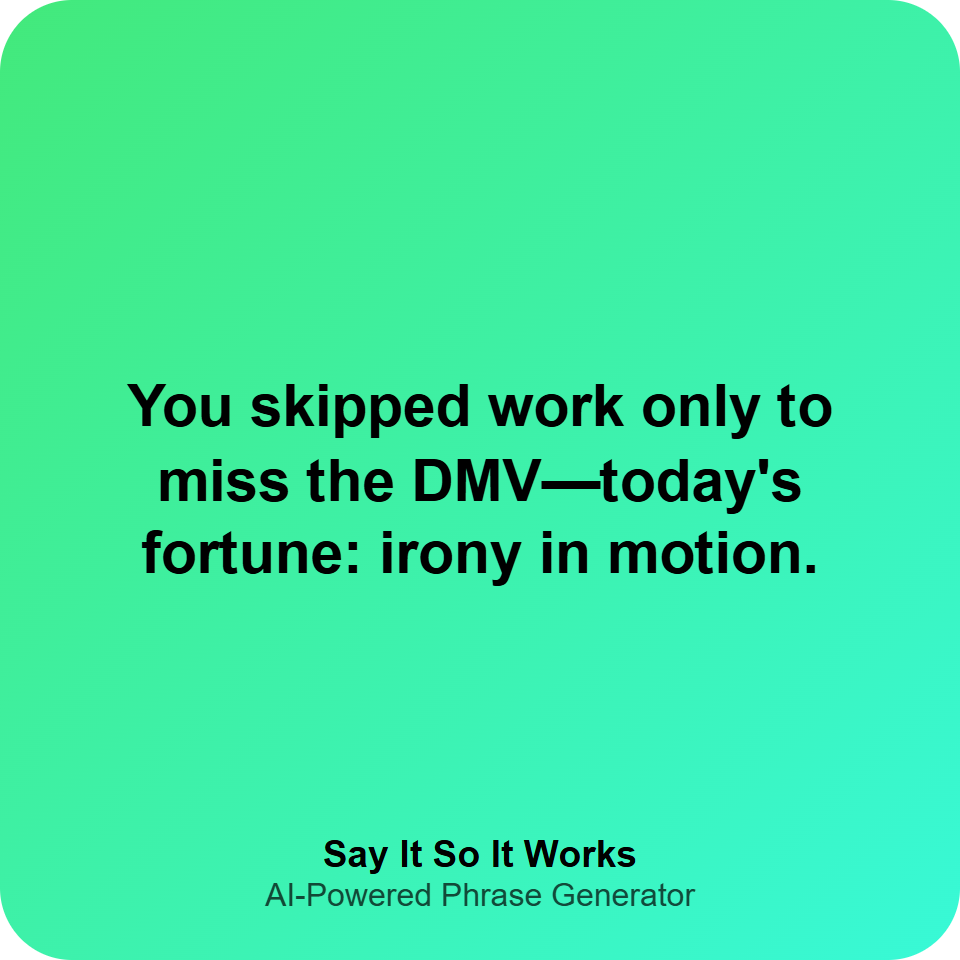 You skipped work only to miss the DMV—today's fortune: irony in motion.