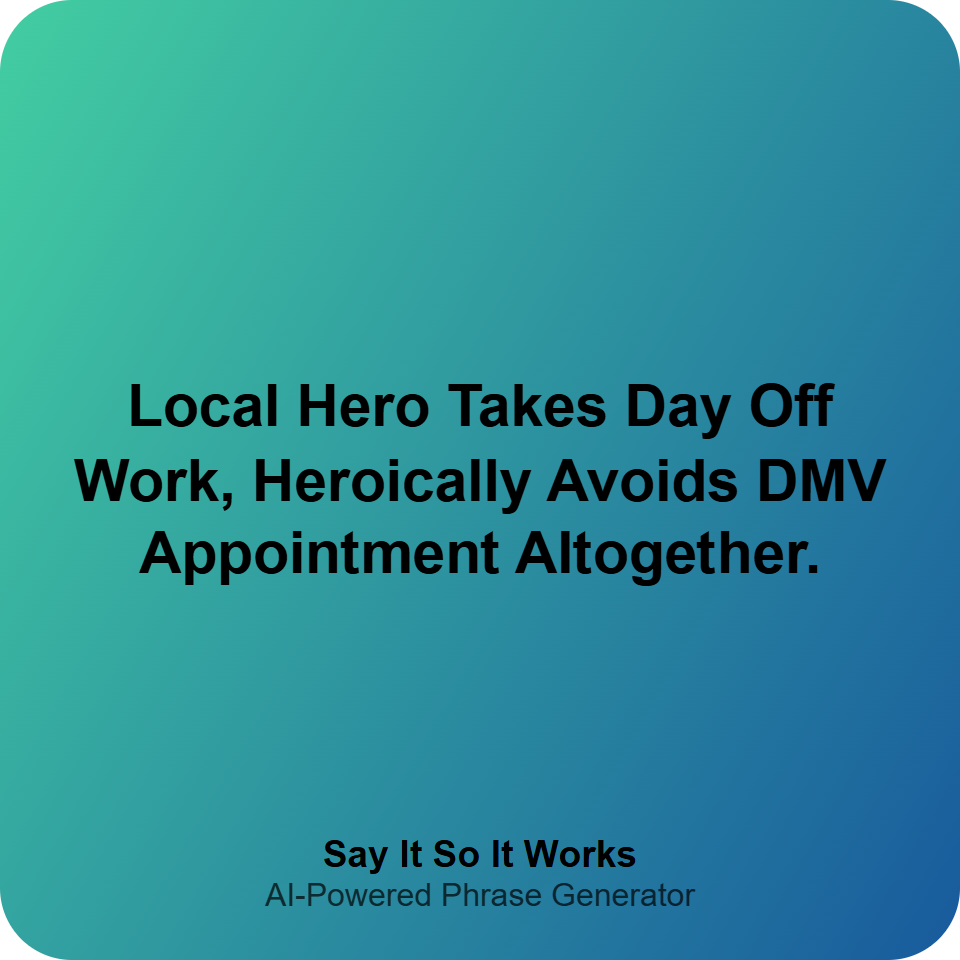 Local Hero Takes Day Off Work, Heroically Avoids DMV Appointment Altogether.