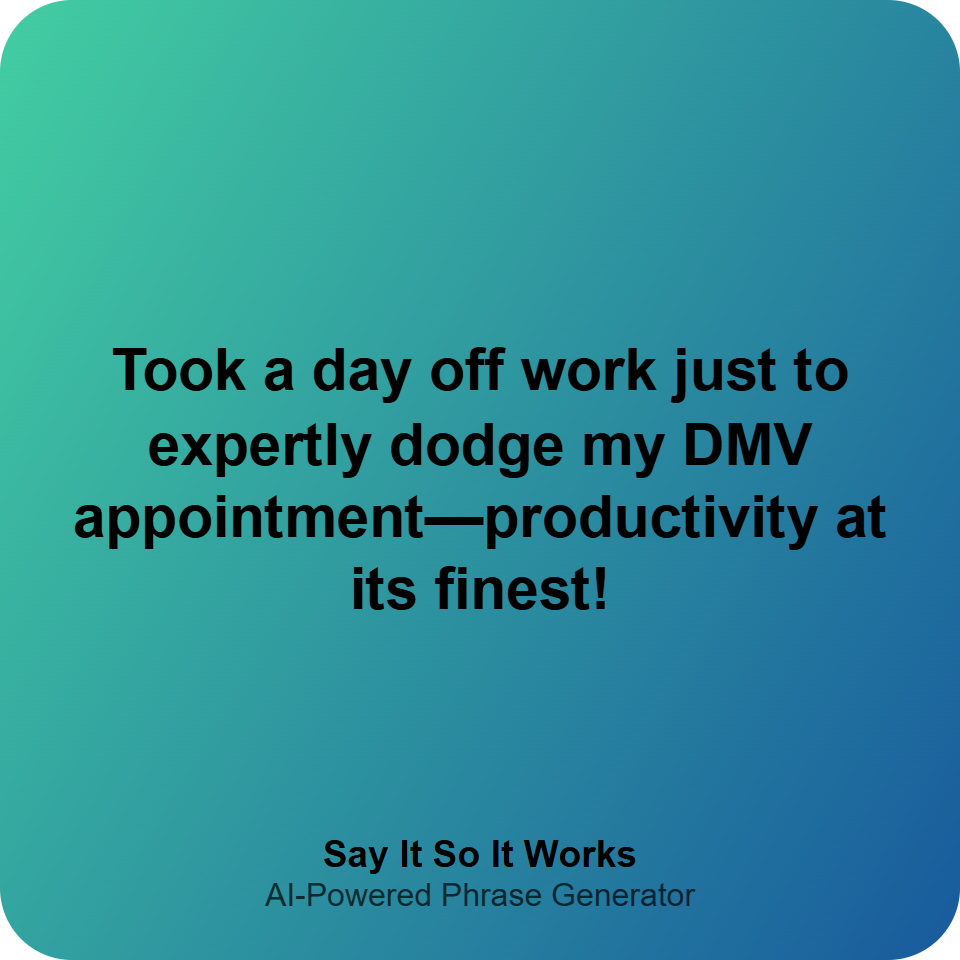 Took a day off work just to expertly dodge my DMV appointment—productivity at its finest!