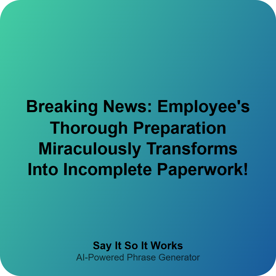 Breaking News: Employee's Thorough Preparation Miraculously Transforms Into Incomplete Paperwork!