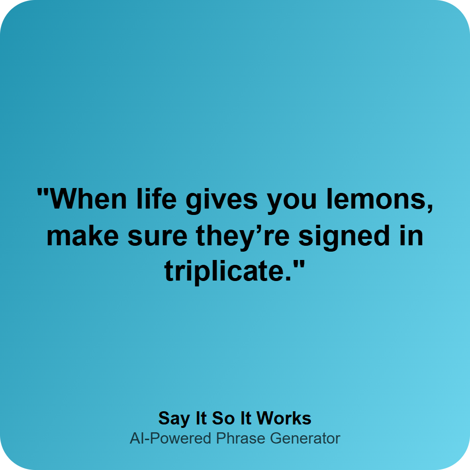 "When life gives you lemons, make sure they’re signed in triplicate."