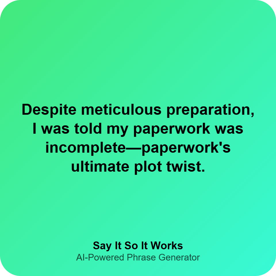 Despite meticulous preparation, I was told my paperwork was incomplete—paperwork's ultimate plot twist.