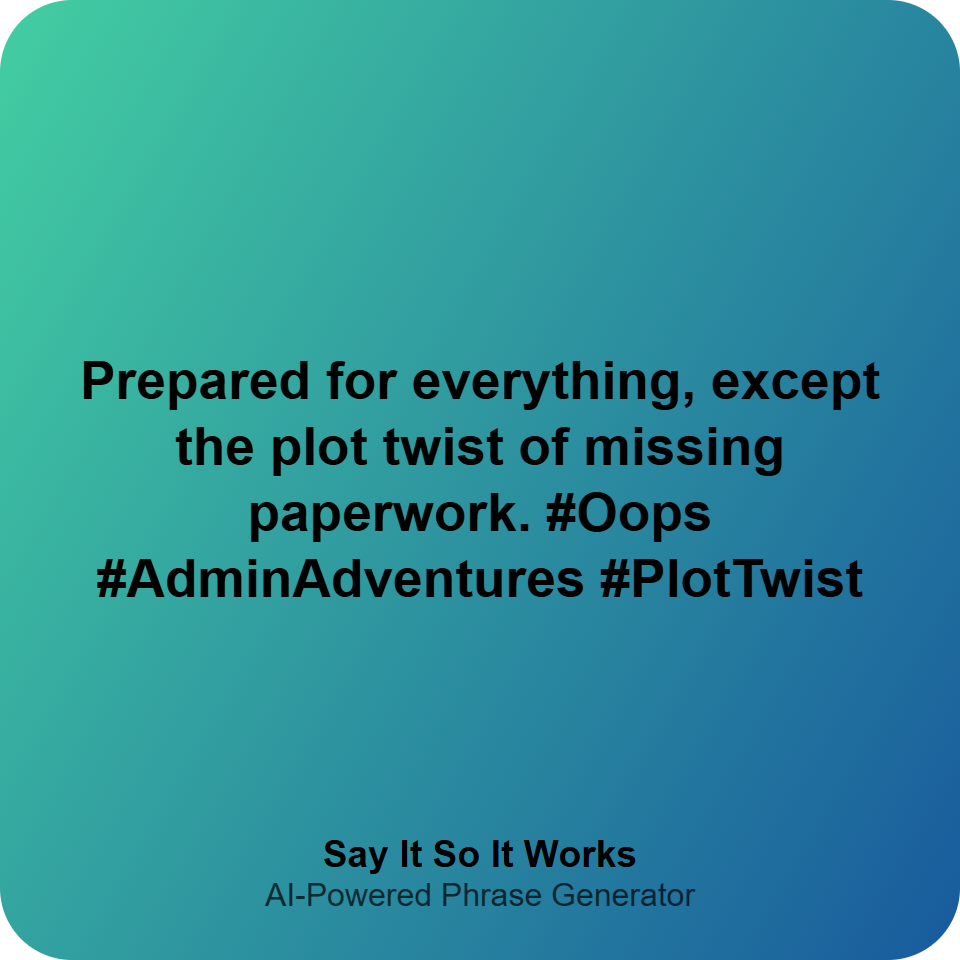 Prepared for everything, except the plot twist of missing paperwork. #Oops #AdminAdventures #PlotTwist
