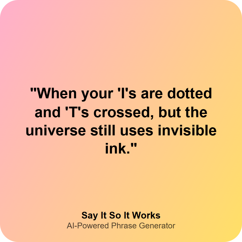 "When your 'I's are dotted and 'T's crossed, but the universe still uses invisible ink."