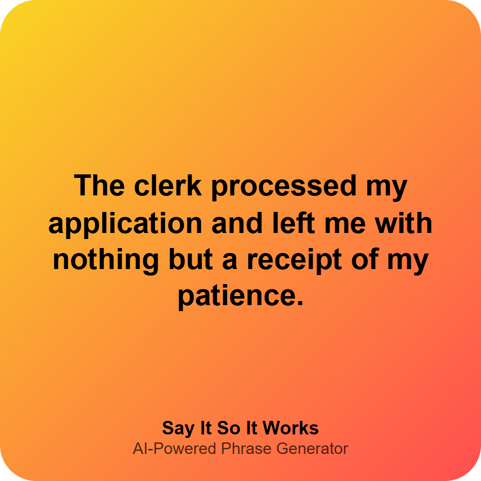 The clerk processed my application and left me with nothing but a receipt of my patience.