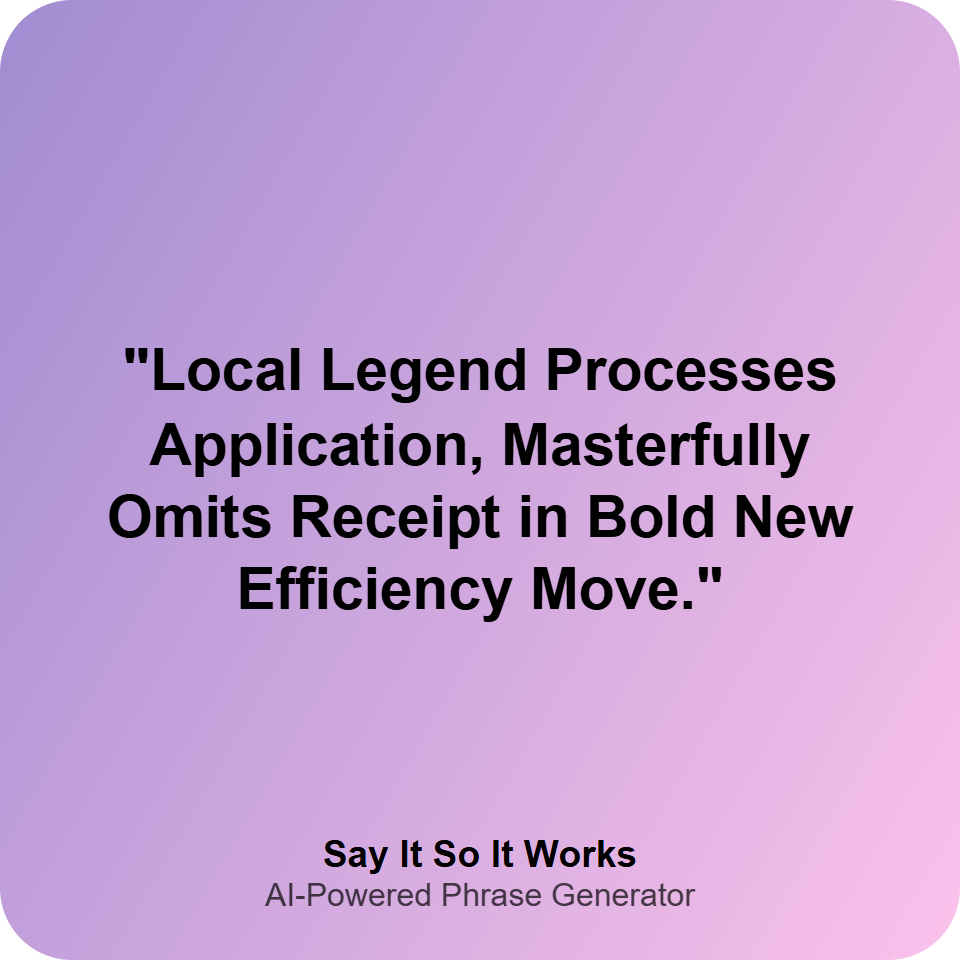 "Local Legend Processes Application, Masterfully Omits Receipt in Bold New Efficiency Move."