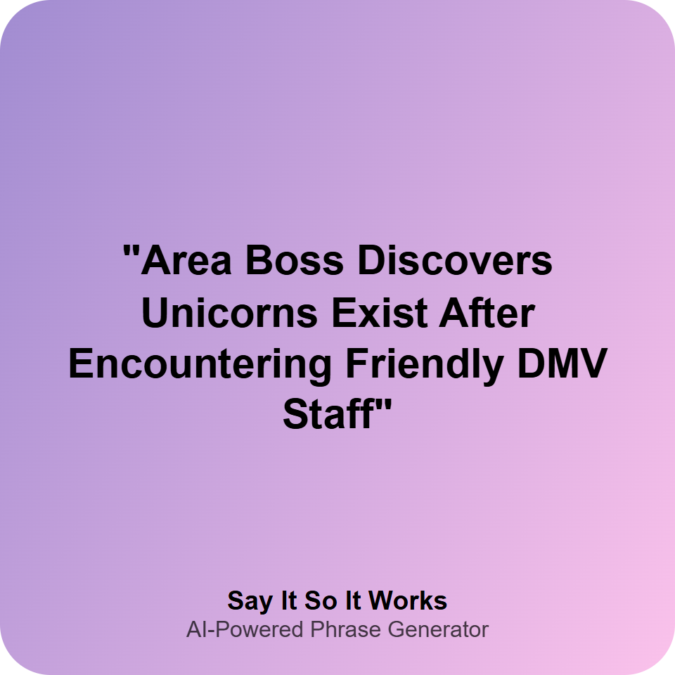 "Area Boss Discovers Unicorns Exist After Encountering Friendly DMV Staff"