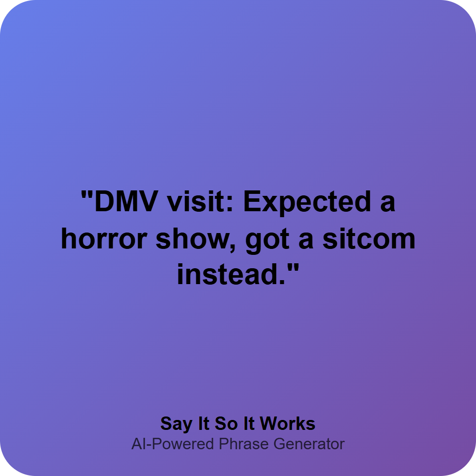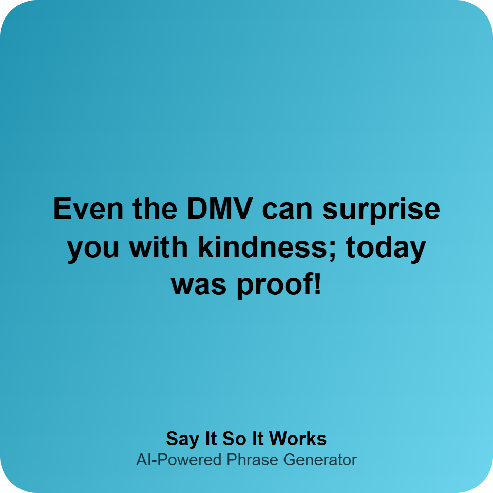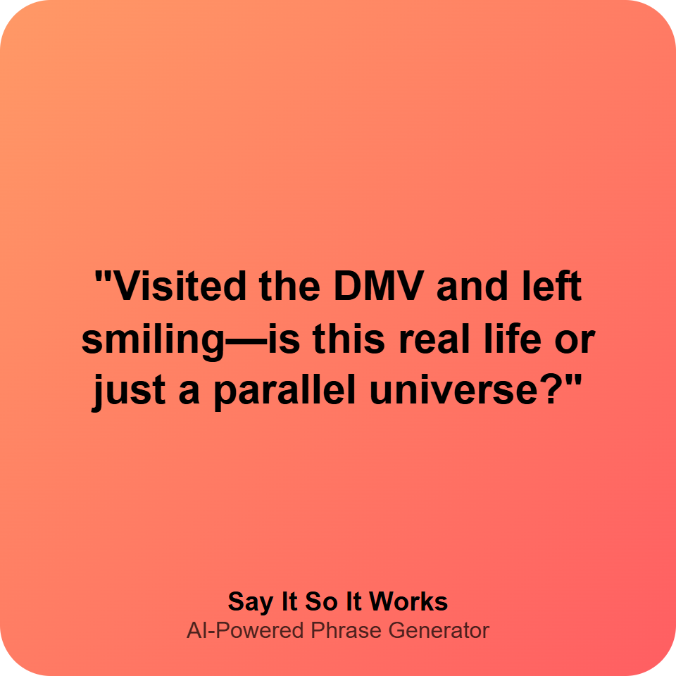 "Visited the DMV and left smiling—is this real life or just a parallel universe?"