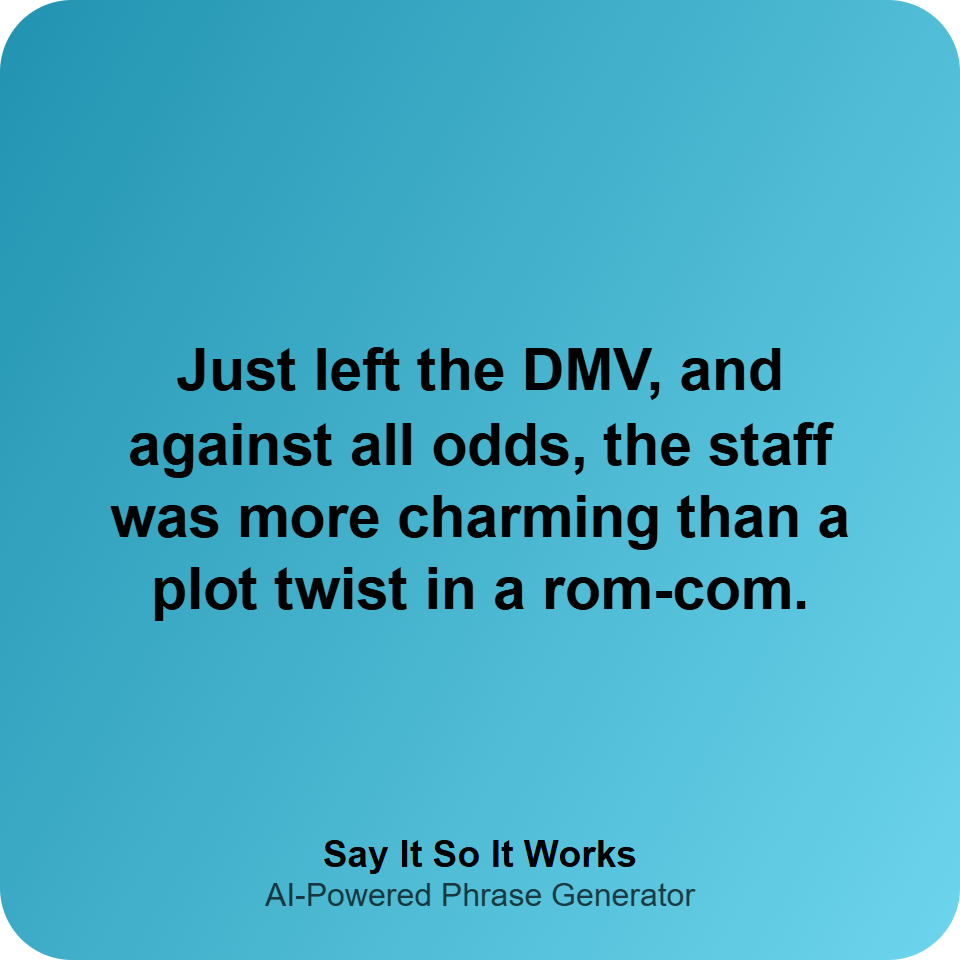Just left the DMV, and against all odds, the staff was more charming than a plot twist in a rom-com.