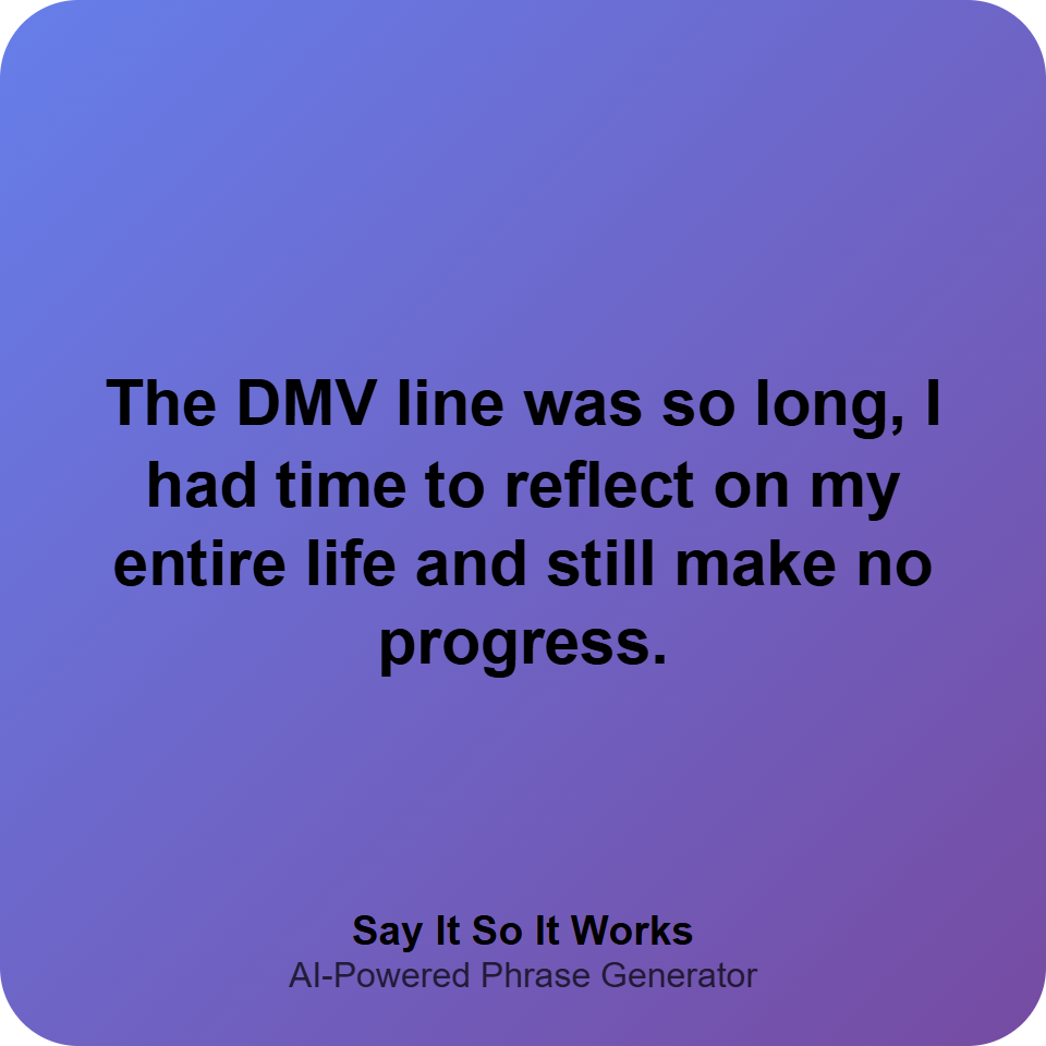 The DMV line was so long, I had time to reflect on my entire life and still make no progress.
