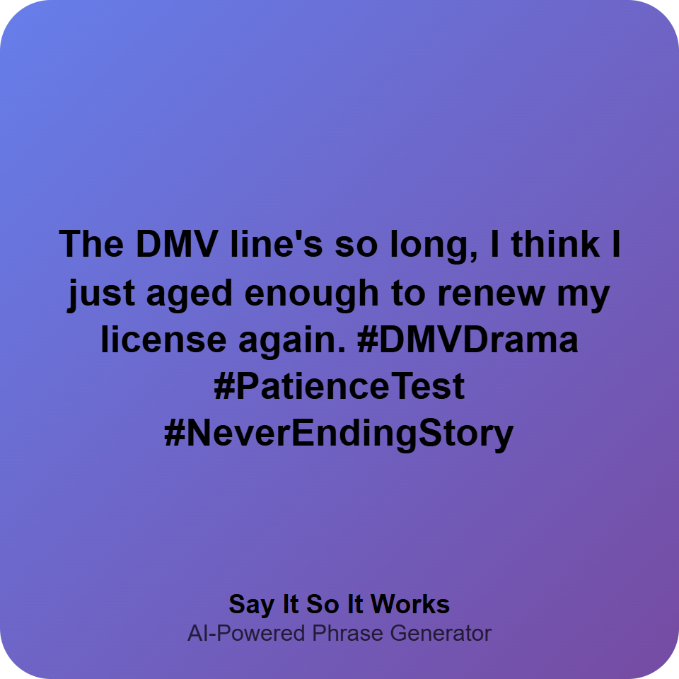 The DMV line's so long, I think I just aged enough to renew my license again. #DMVDrama #PatienceTest #NeverEndingStory