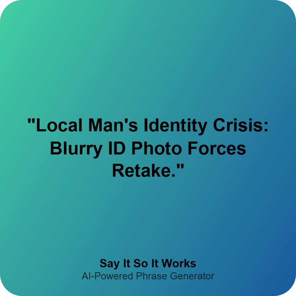"Local Man's Identity Crisis: Blurry ID Photo Forces Retake."