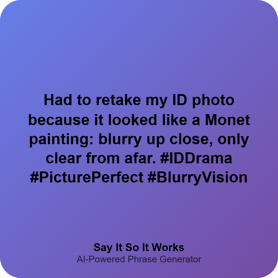 Had to retake my ID photo because it looked like a Monet painting: blurry up close, only clear from afar. #IDDrama #PicturePerfect #BlurryVision