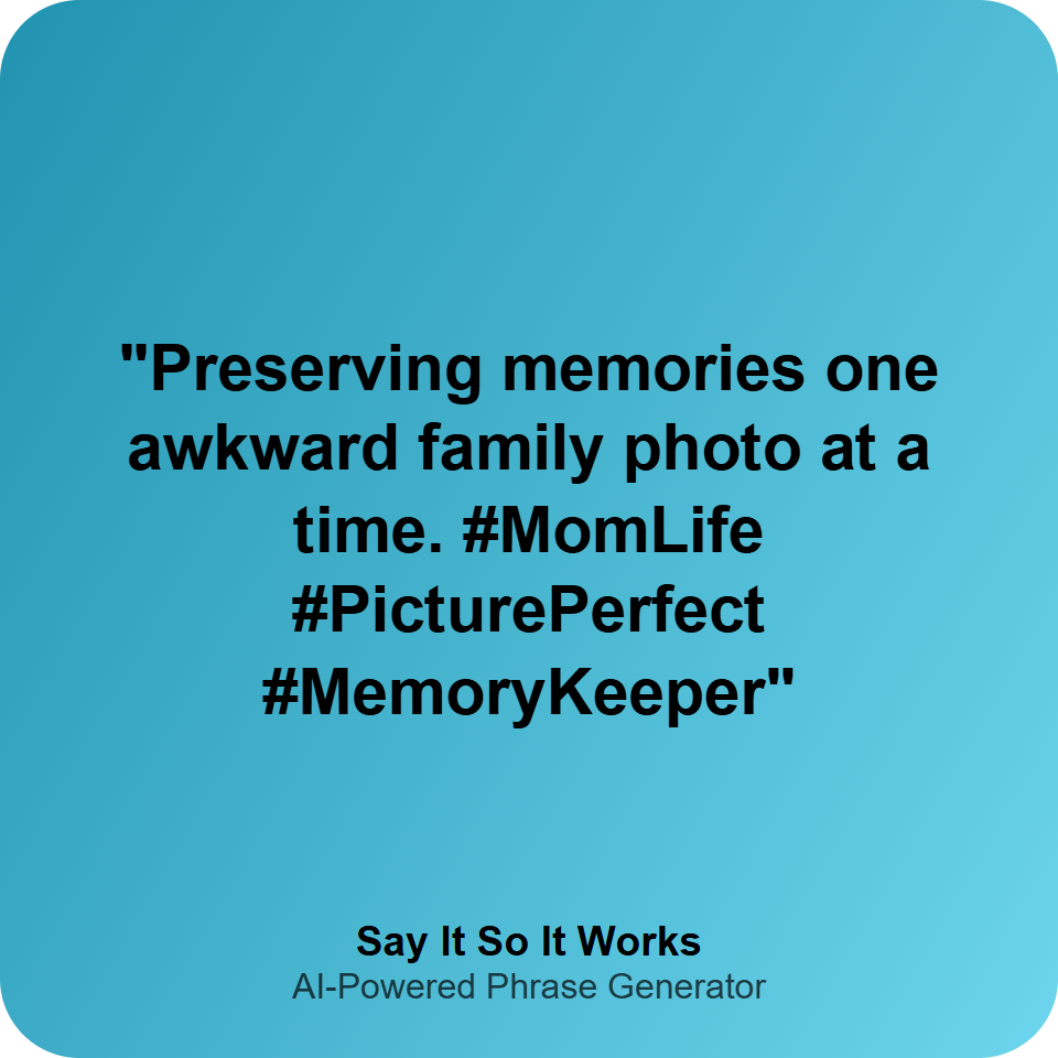 "Preserving memories one awkward family photo at a time. #MomLife #PicturePerfect #MemoryKeeper"