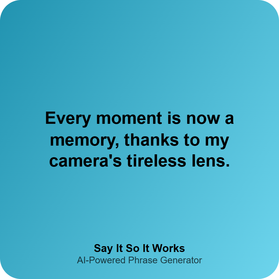 Every moment is now a memory, thanks to my camera's tireless lens.