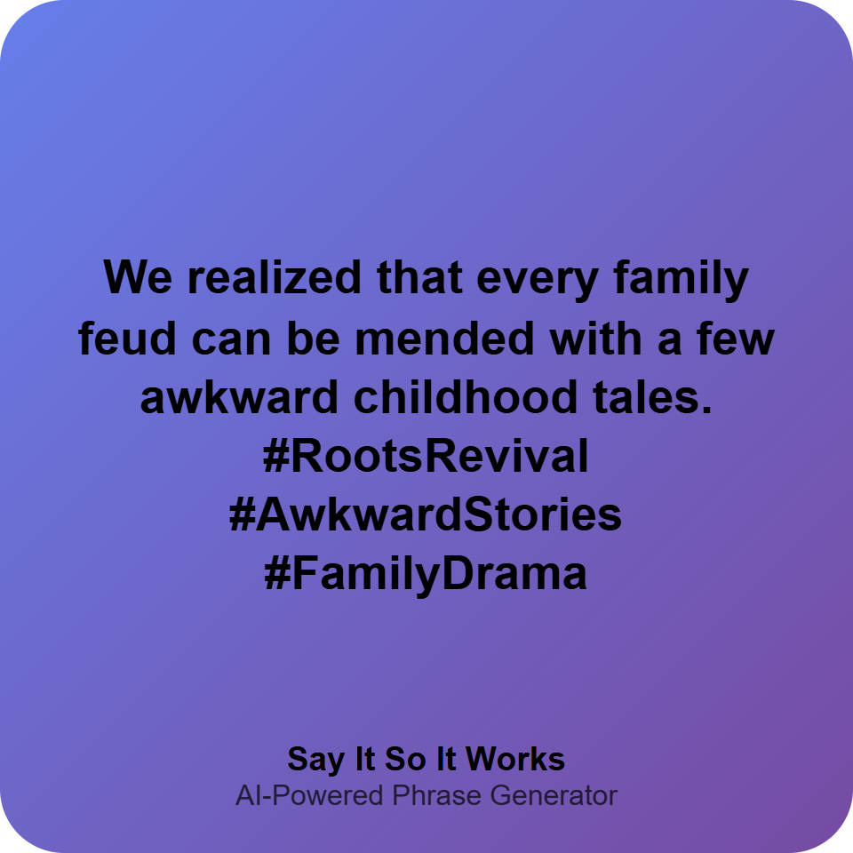 We realized that every family feud can be mended with a few awkward childhood tales. #RootsRevival #AwkwardStories #FamilyDrama