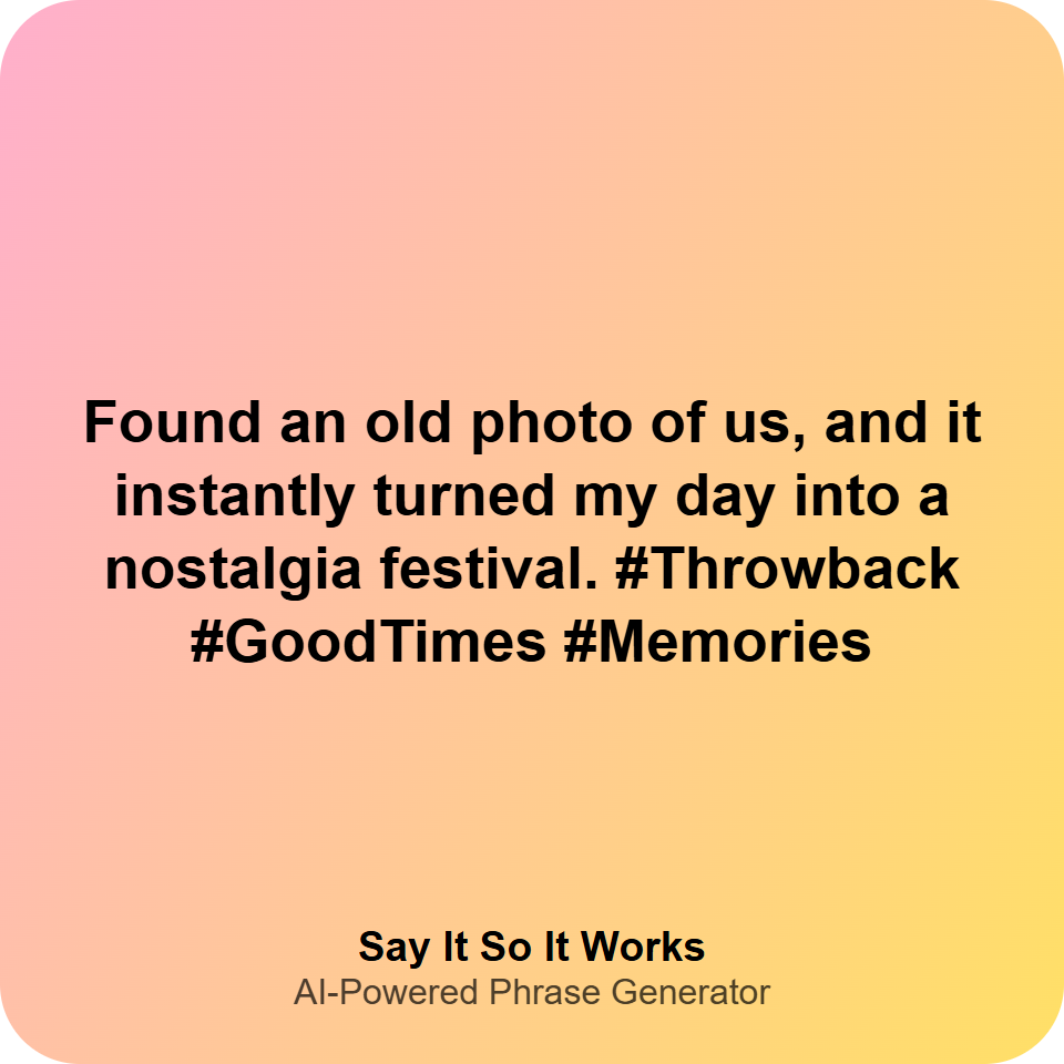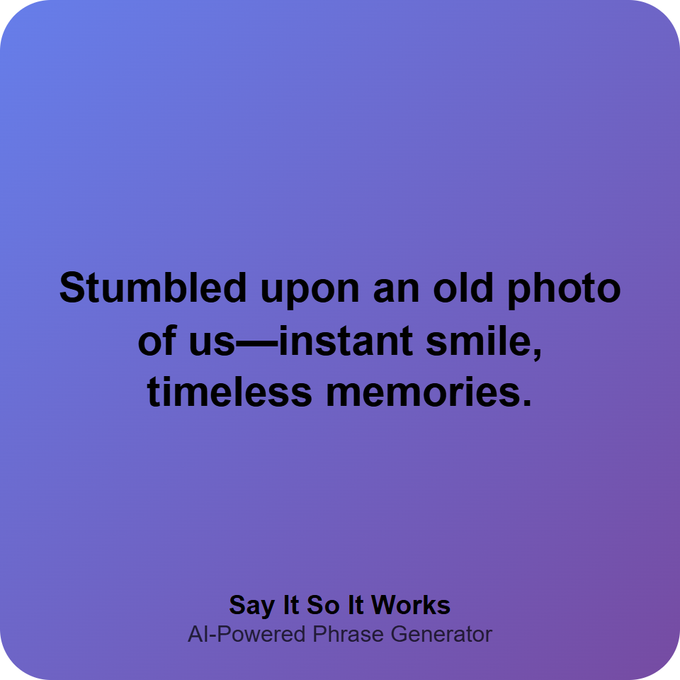 "Stumbled upon our old photo—instant smile, timeless memories."