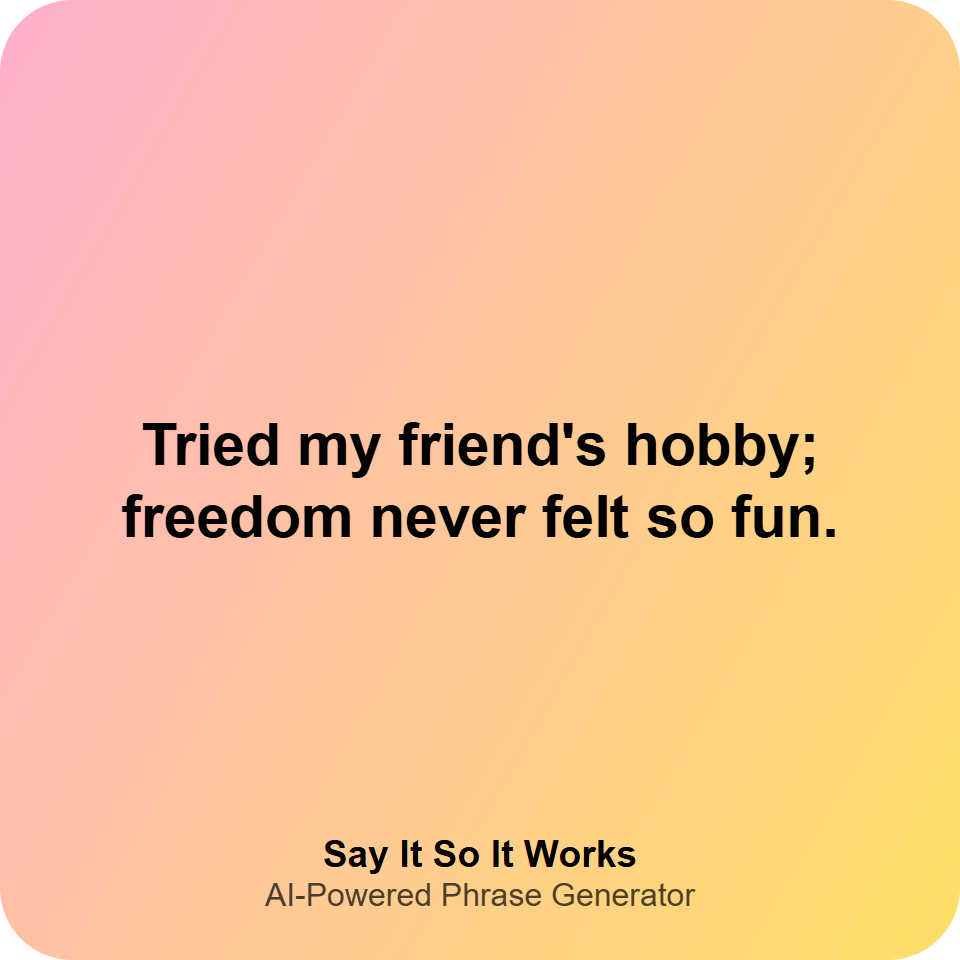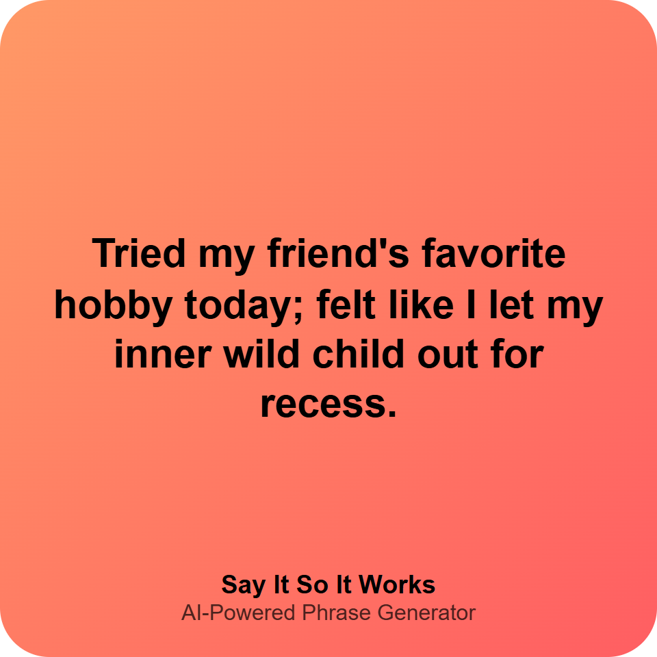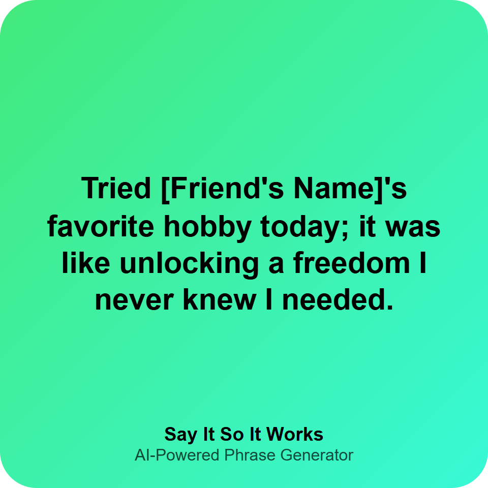 Tried [Friend's Name]'s favorite hobby today; it was like unlocking a freedom I never knew I needed.