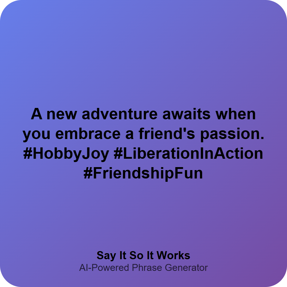 A new adventure awaits when you embrace a friend's passion. #HobbyJoy #LiberationInAction #FriendshipFun